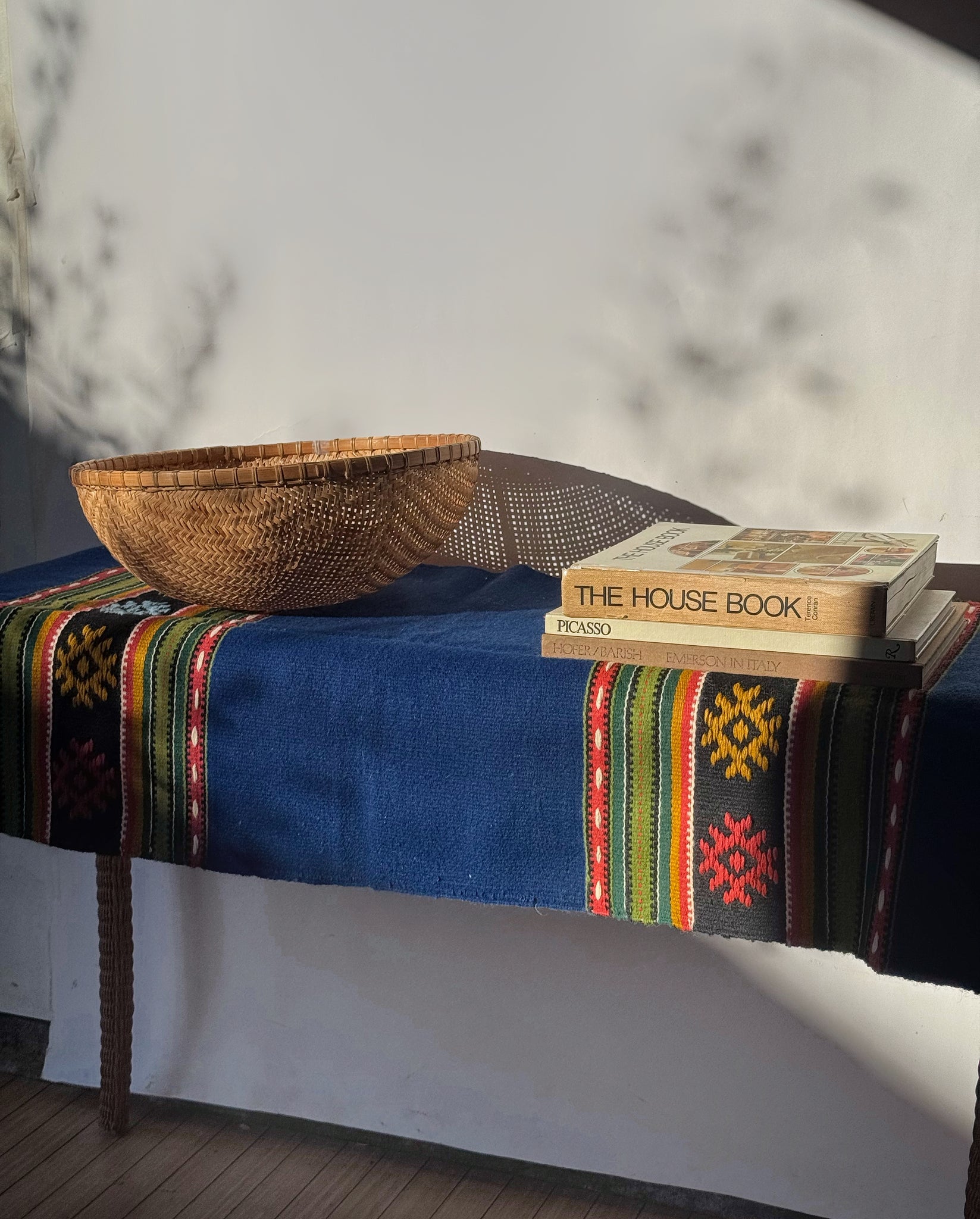 Vintage handwoven vintage wool Guatemalan textile. Works perfectly as a table runner, wall art, or textile on the floor. In excellent condition. Measures 49"L x 21"W