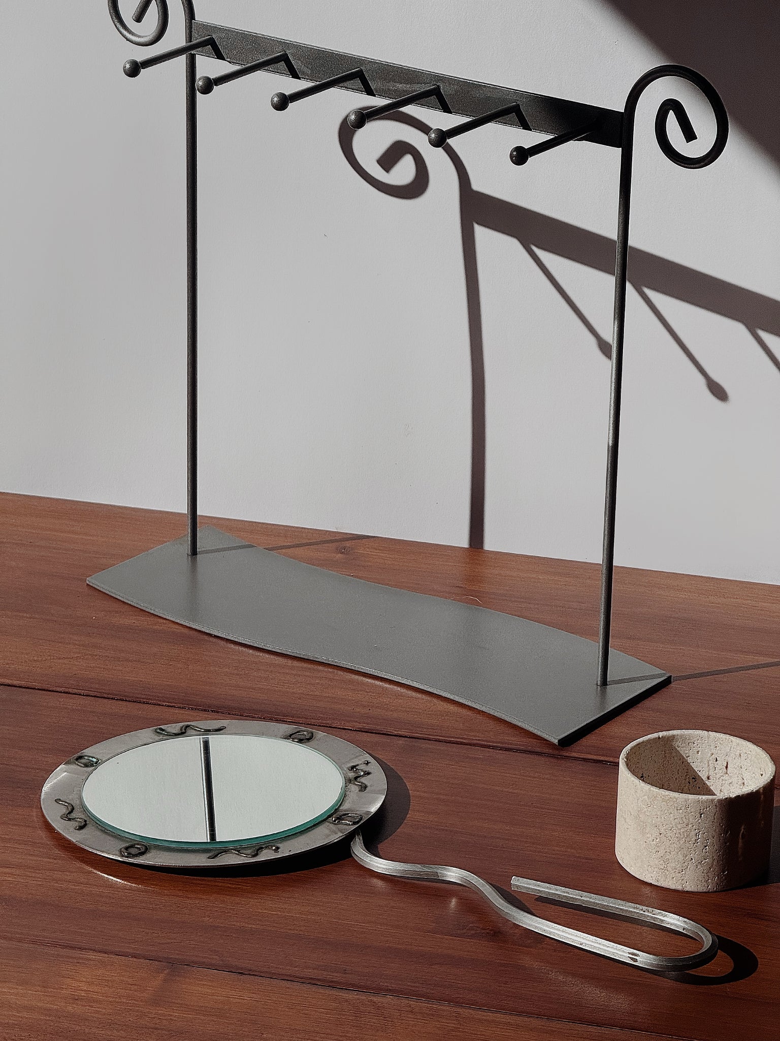 Super cute metal vintage spiral necklace holder. In great condition. Stands tall and holds plenty of jewelry pieces. Measures 13.5"T x 15.5"W