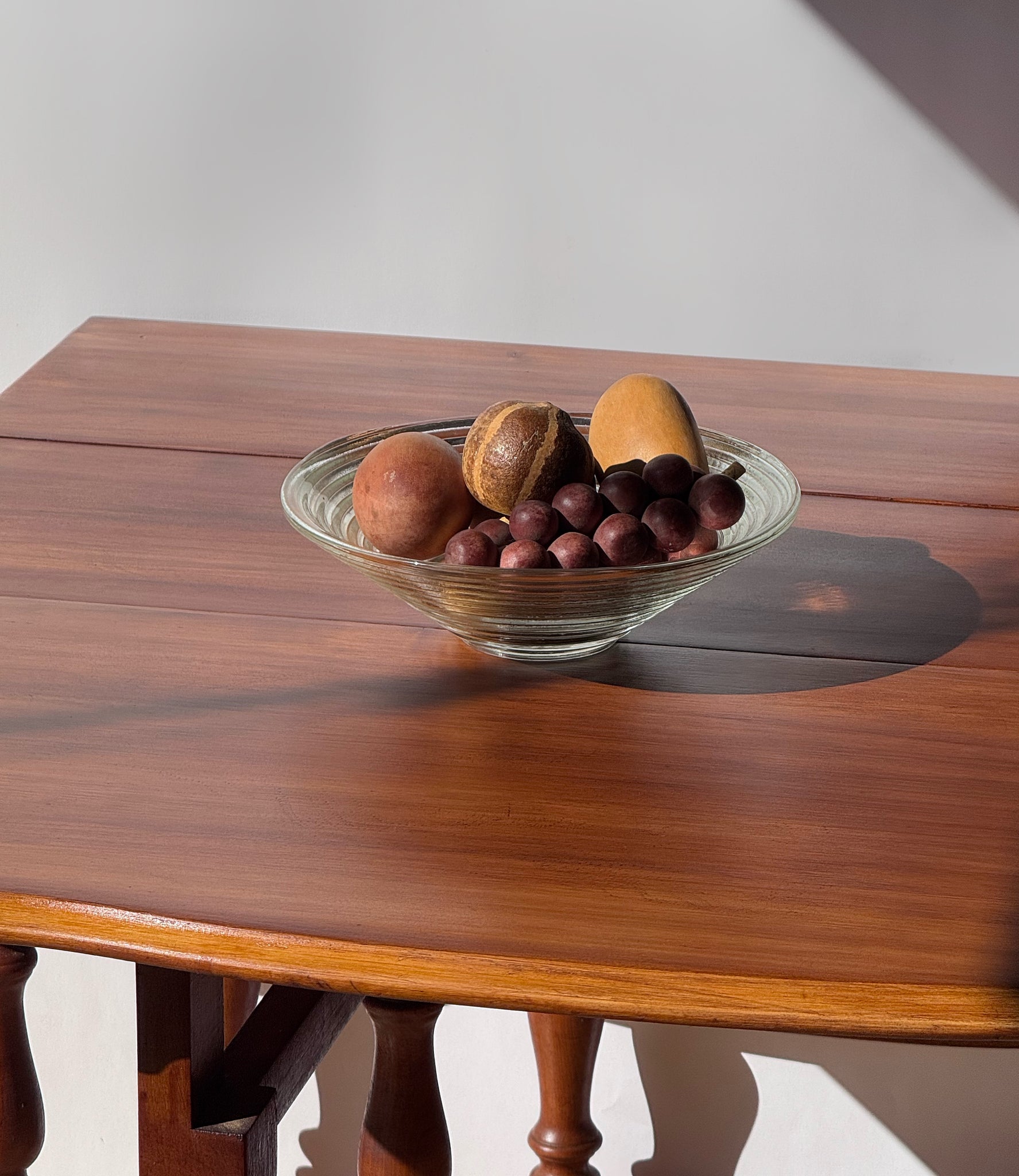 Weighty medium sized vintage glass bowl. Spiral design reflects the light so beautifully. Measures 10" Diameter. In great condition.
