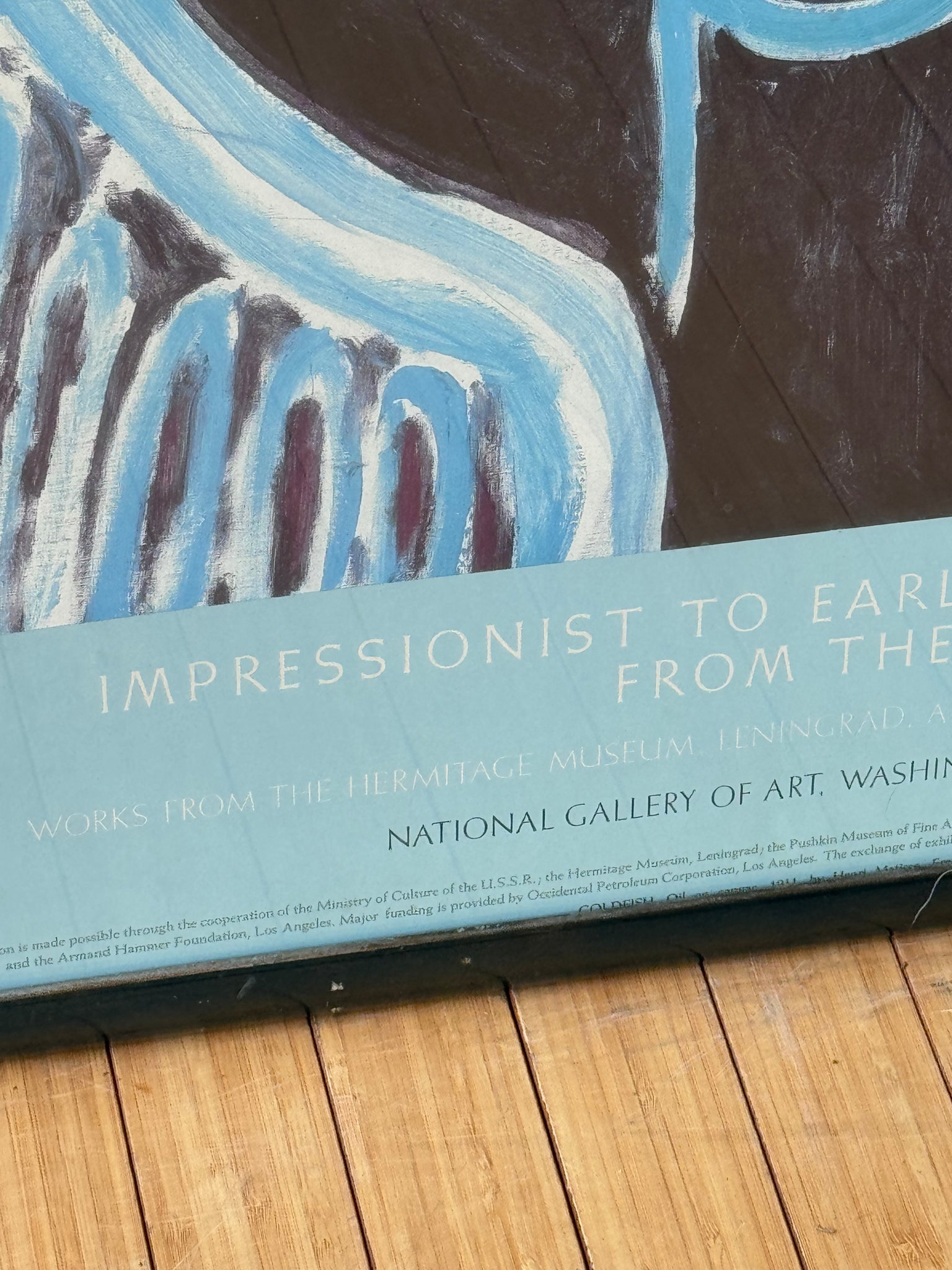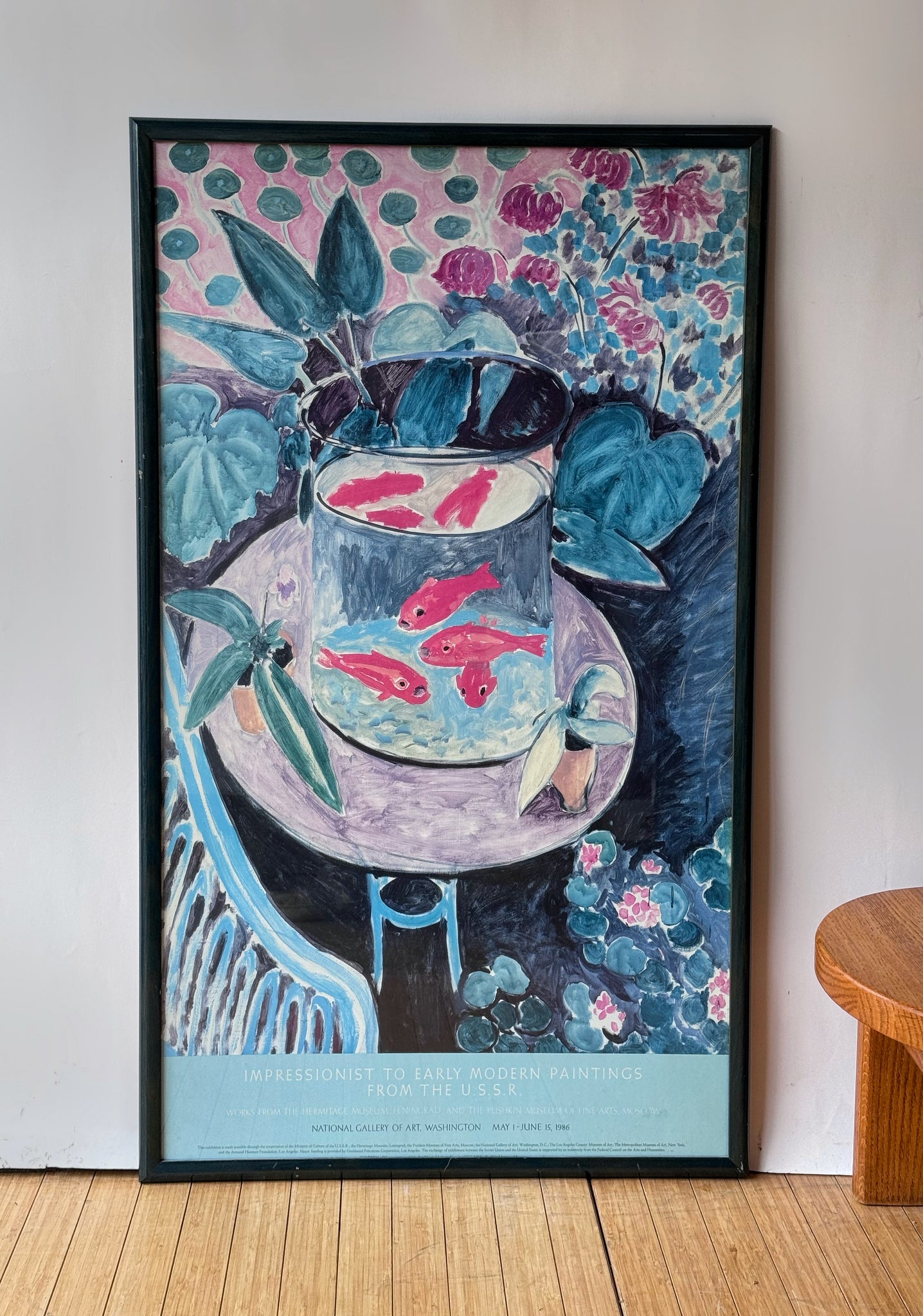 Framed exhibition poster from National Gallery of Art in Washington 1986, featuring Henri Matisse's "Goldfish" painting from 1912. Acrylic green glass frame is in great shape and is large and heavy. Local PDX Pick up only.Dimensions: 41.5" x 25.5"