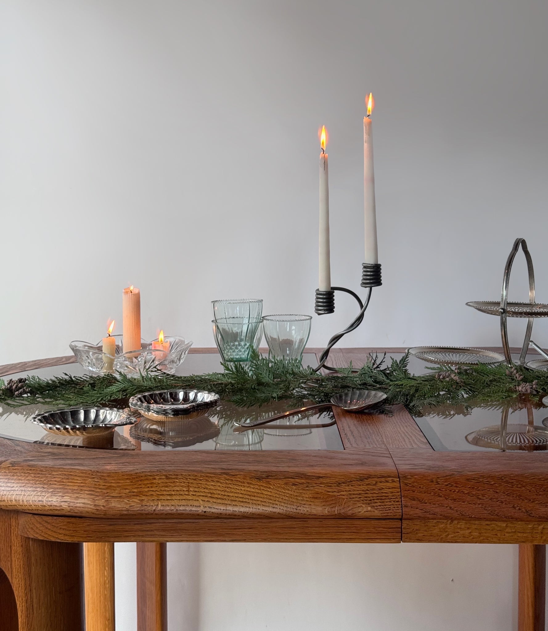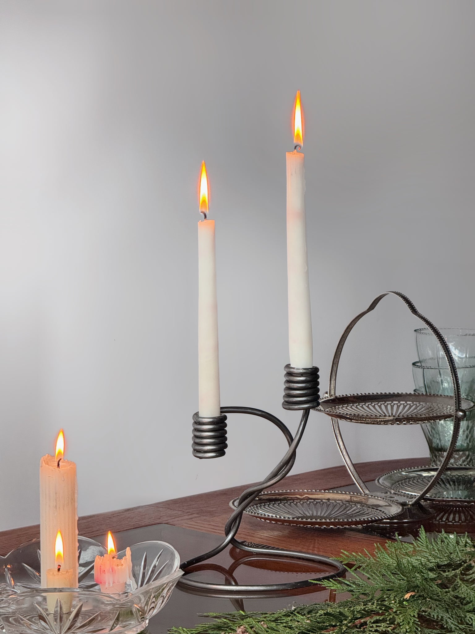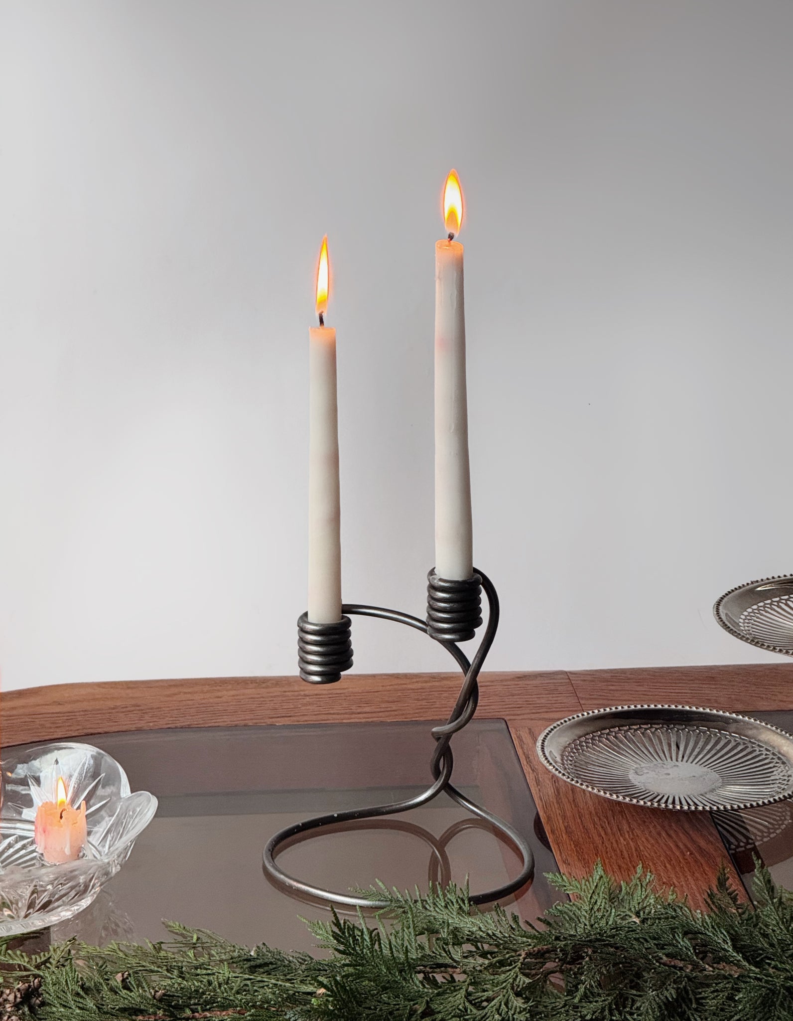Abstract vintage iron candlestick holder. Unique design, in great condition. Measures 8"T x 6.5" Circumference