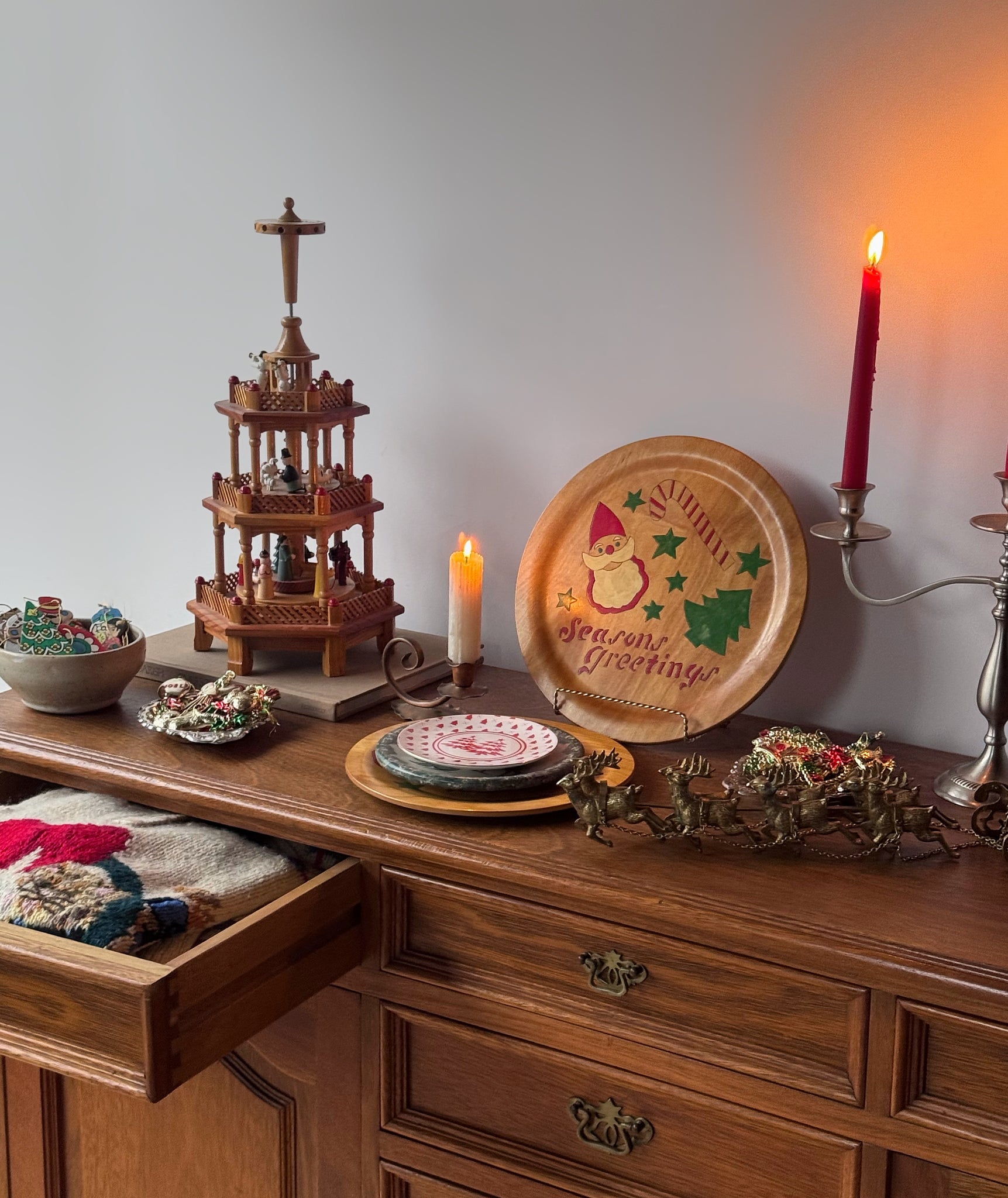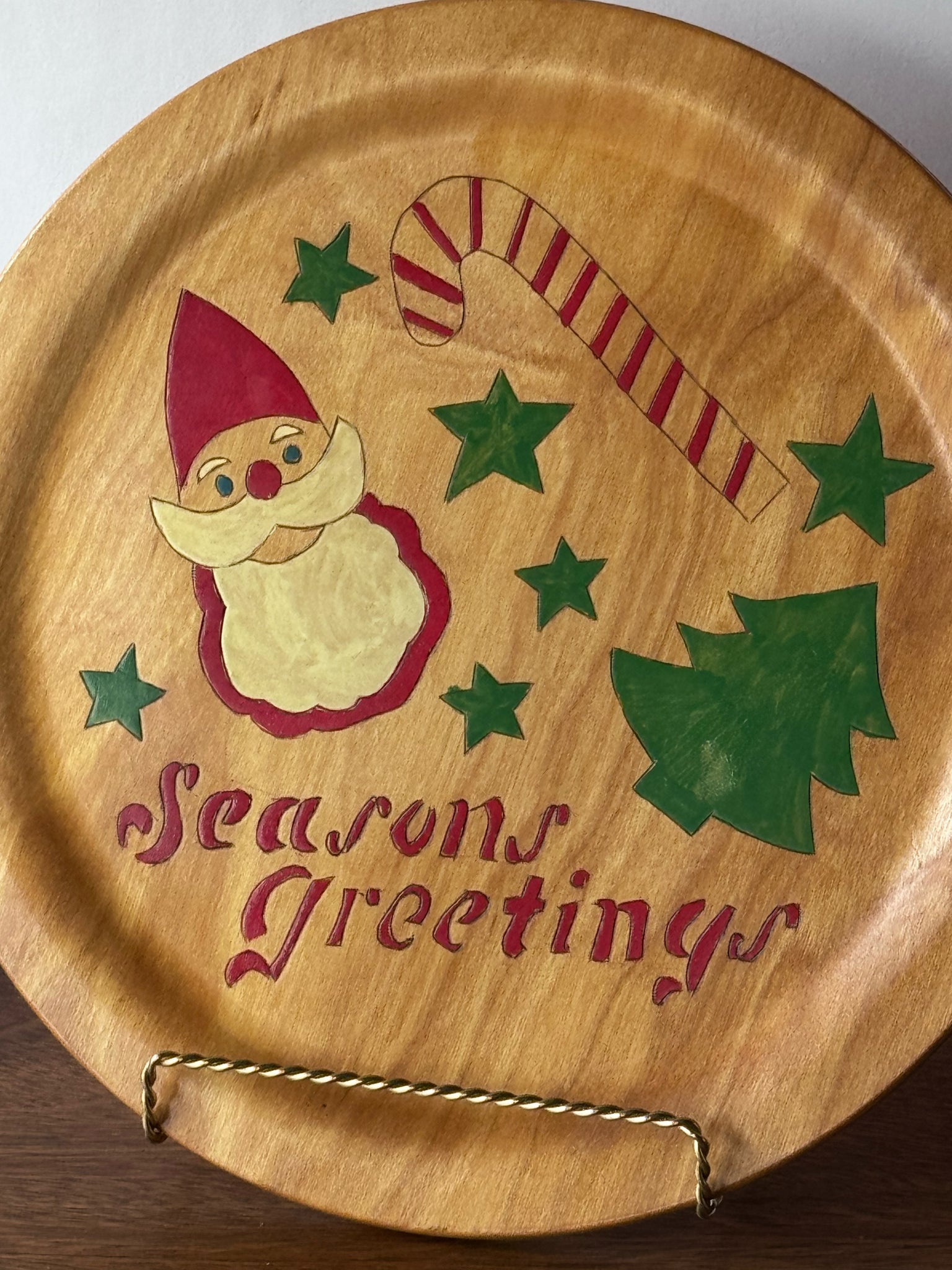 Super cute hand painted vintage wooden Santa cookie plate, made in the 70's. In great condition. Priced individually. Measures: Big- 12" Small-10.25"
