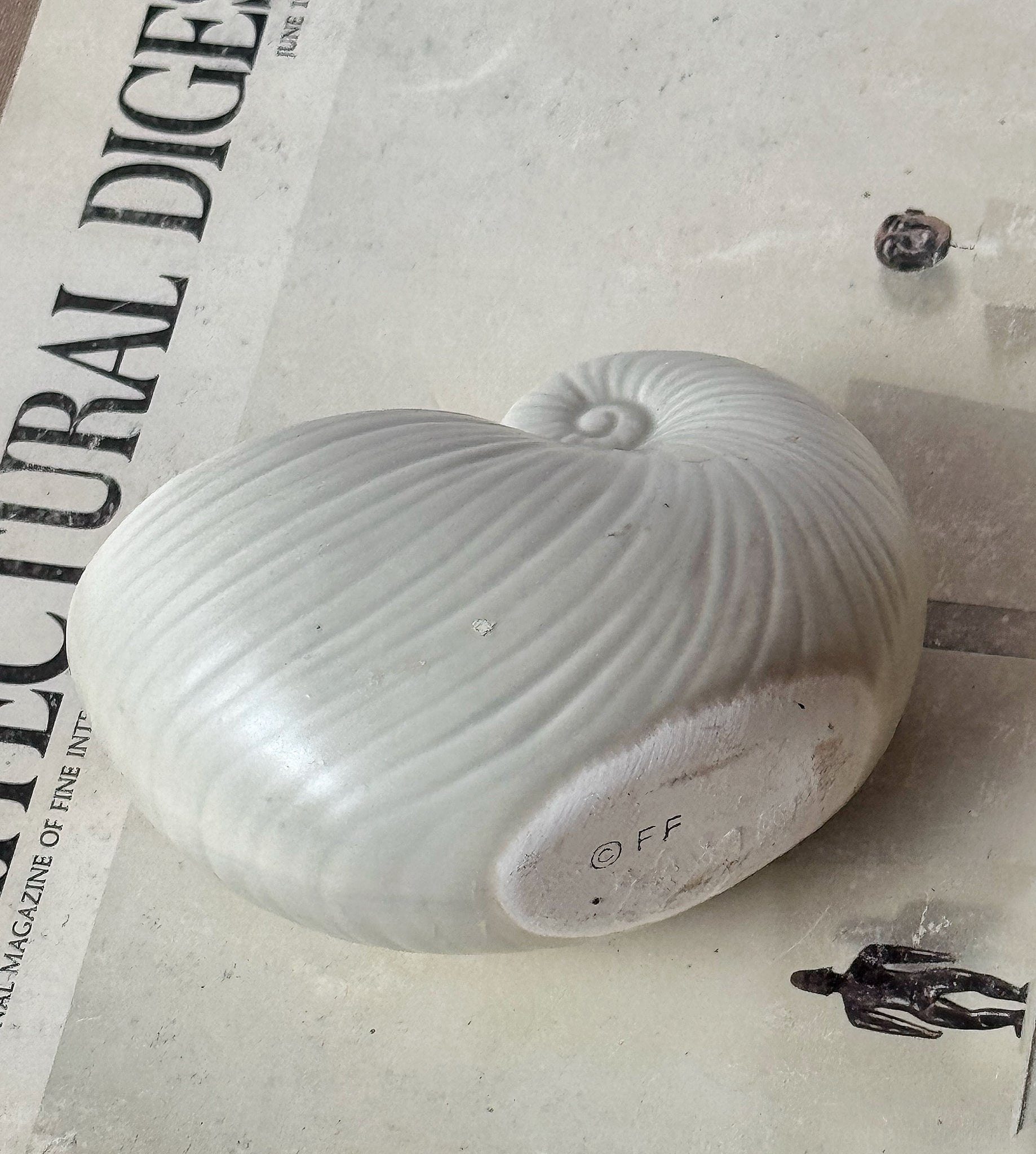 Very cute and small seashell ceramic planter. Marked FF on the bottom. In great shape. Measures 2.5"T x 3.5"W x 1.5"D