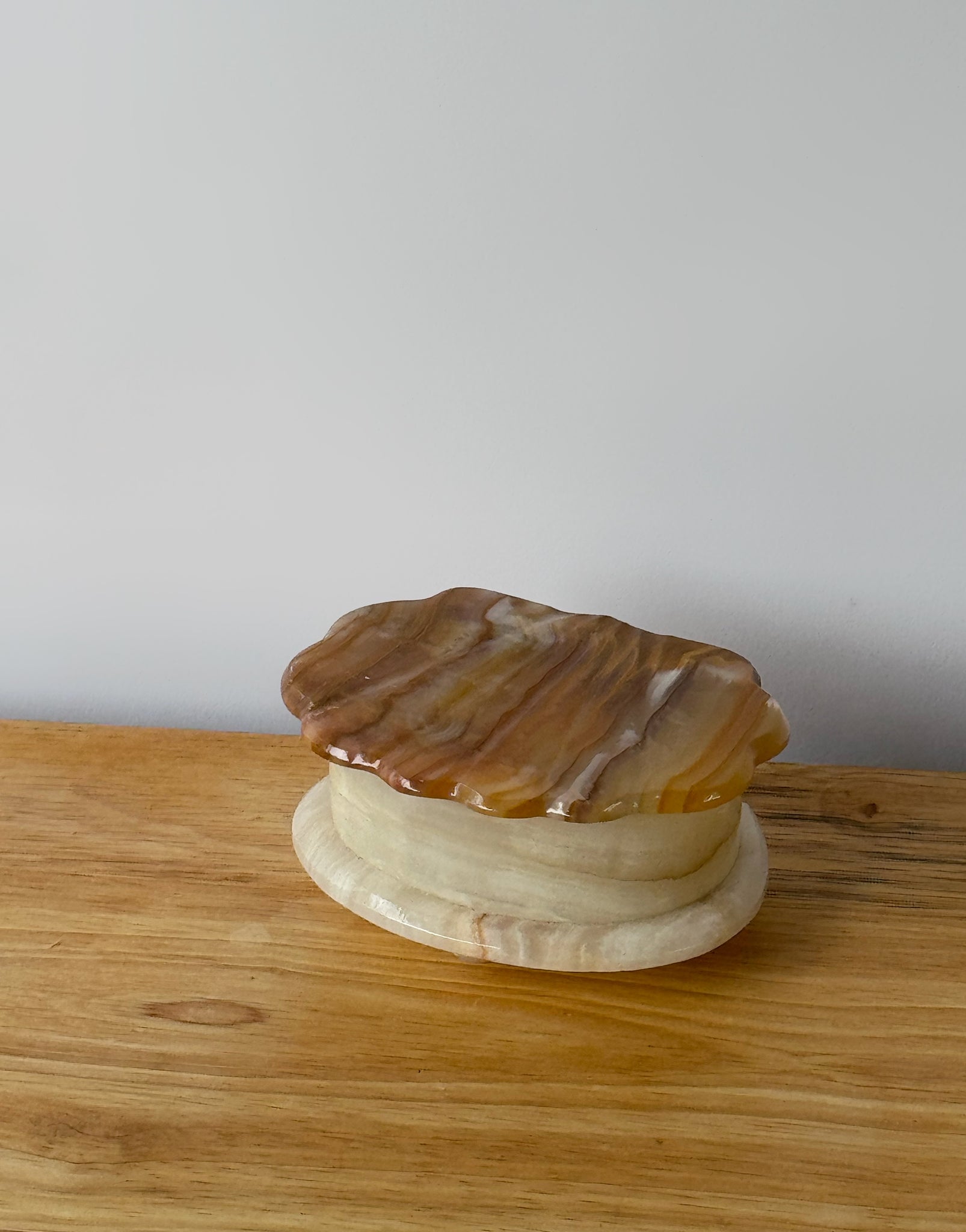 In great shape. Perfect for rings and small pieces of jewelry. Brass hinges and cute little onyx feet. Measures 1.75"T x 2"W x 2"D